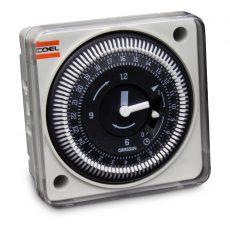 Programador horário compacto com 40 memórias, uma saída relé e LEDs de alto brilho para indicação de instrumento energizado e saída ligada.